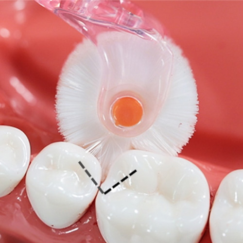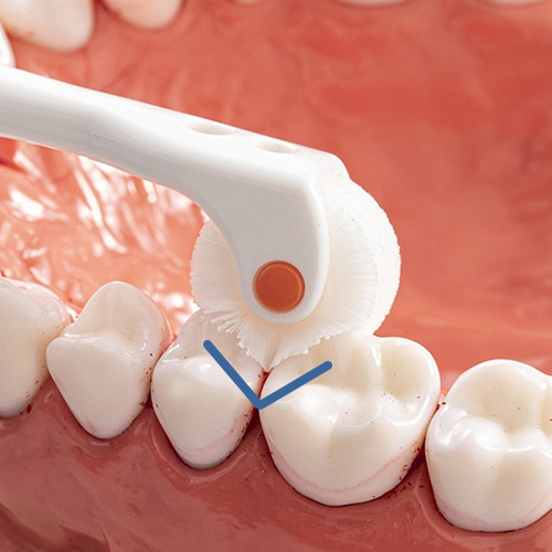 歯と歯ぐきの境目や歯の横側にフィットし、連続して当たっていきます。