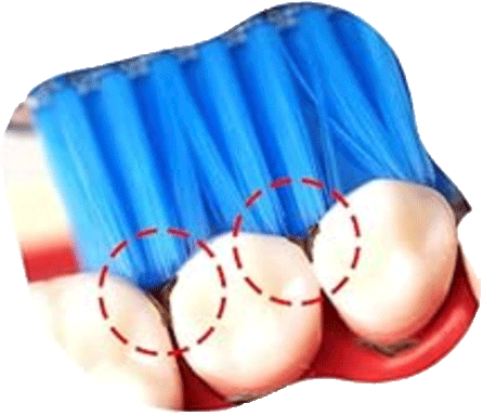 直線的に磨くので、歯のスキマや根元にブラシの先が届きにくく、磨き残しやすい。