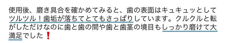 歯に軽く当てて転がしているだけで、ツルツル感が心地良い。
